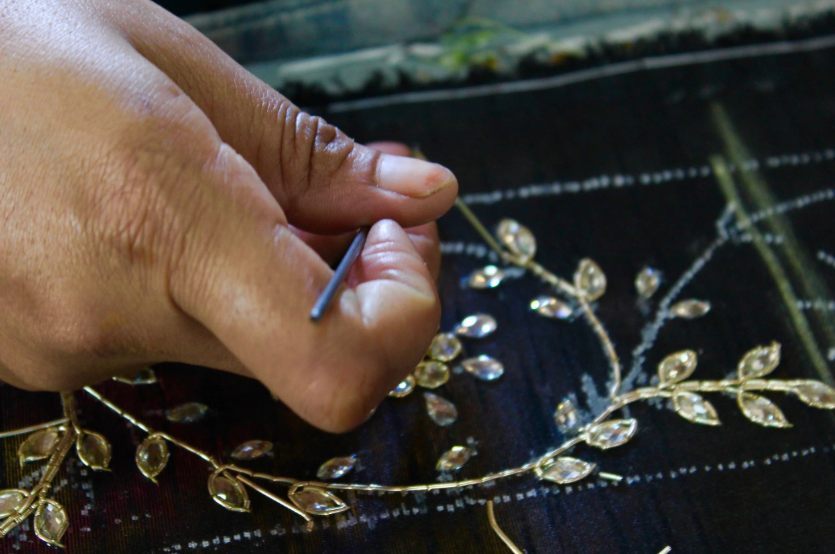 Zardosi once flourished in the princely courts of Bhopal. Over time, the tradition faded—until MSK revived it by training women in this intricate art form using gold, silver, and metallic threads.